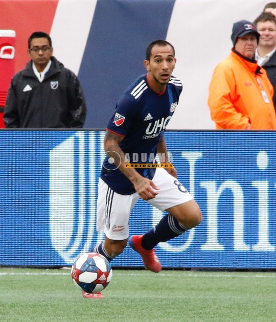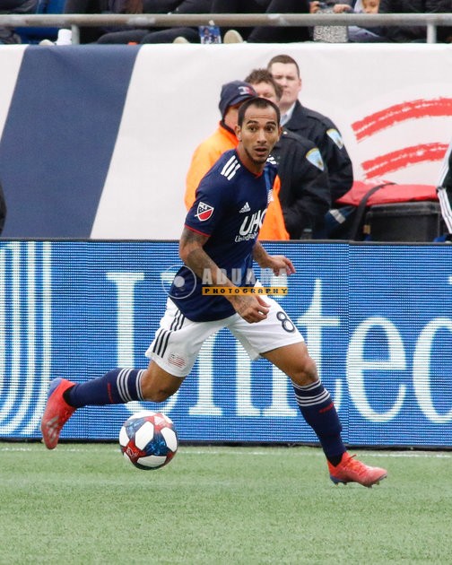 Diego Fagundez (14), Victor Ulloa (8) during New England Revolution and FC Cincinnati MLS match at Gillette Stadium in Foxboro, MA on Sunday, March 24, 2019. The match ended in 2-0 win for FC Cincinnati. CREDIT/ CHRIS ADUAMA