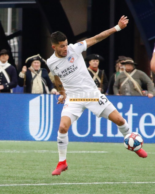 Emmanuel Ladesma (45) during New England Revolution and FC Cincinnati MLS match at Gillette Stadium in Foxboro, MA on Sunday, March 24, 2019. The match ended in 2-0 win for FC Cincinnati. CREDIT/ CHRIS ADUAMA